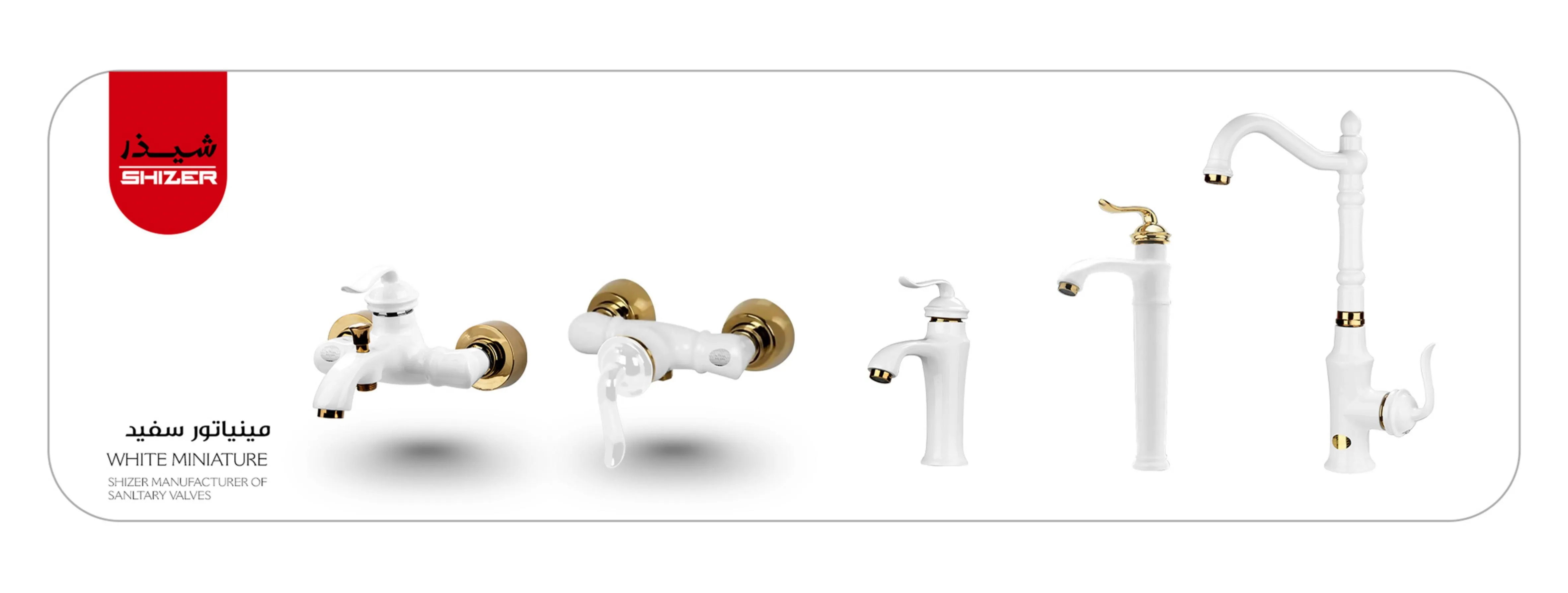 ست شیرآلات شیذر مدل مینیاتور رنگ سفید-طلایی